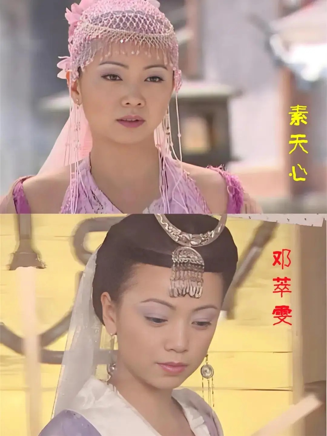 邓萃雯饰演素天心,她创立了无泪之城和玄心正宗,活了几百年已成为半仙之身,为了化解一夕与干将莫邪的仇恨,到处搜集爱情故事,并定下了七世怨侣和七世情侣身份。